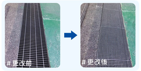 ▼ 大樓車道截水溝鐵蓋常因為「噪音及機車摔倒」等原因而更換溝蓋