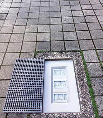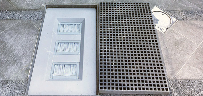 ▼ 大樓車道截水溝鐵蓋常因為「噪音及機車摔倒」等原因而更換溝蓋